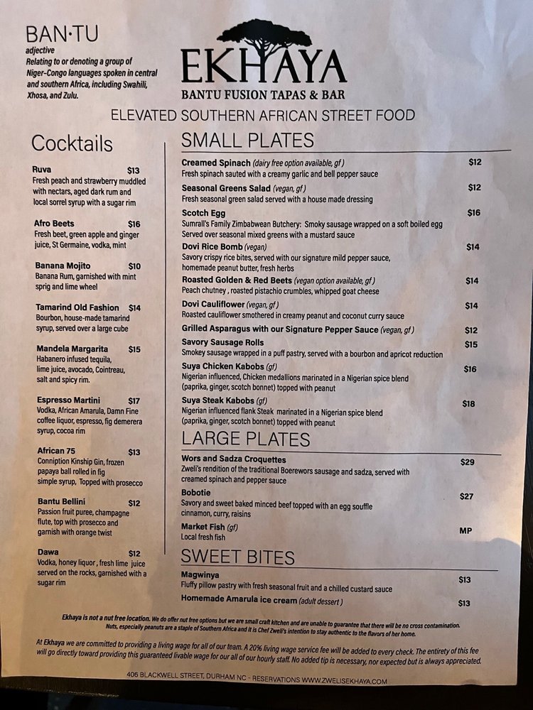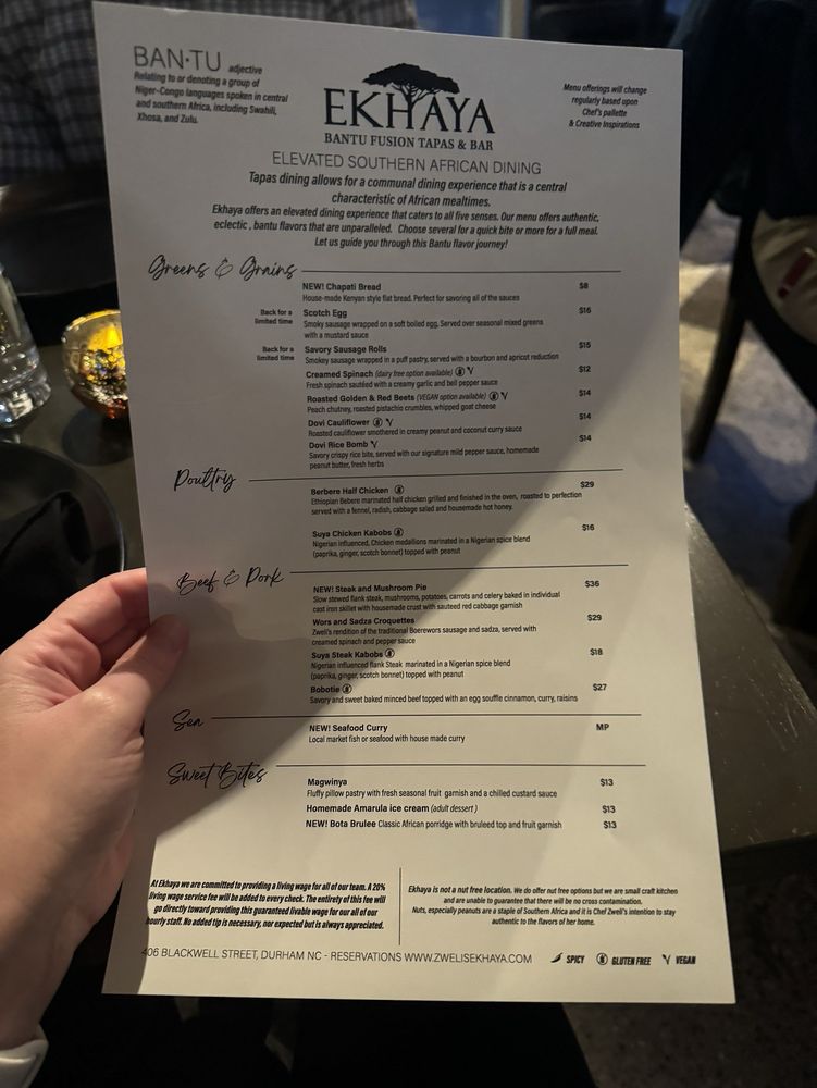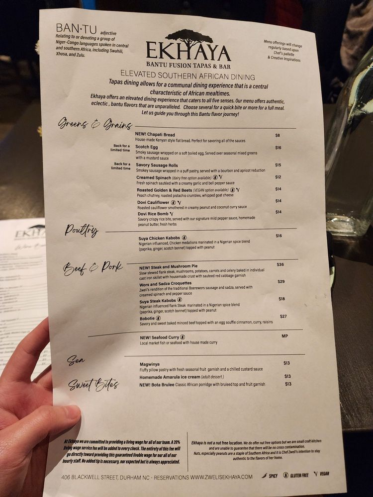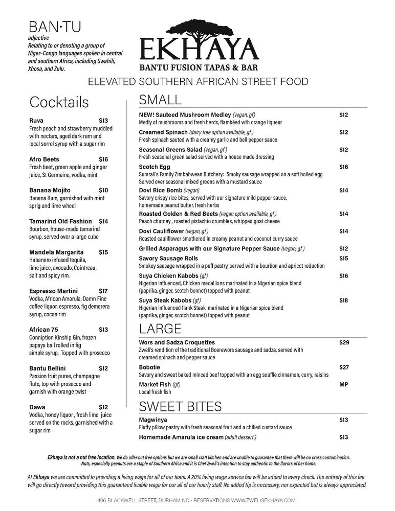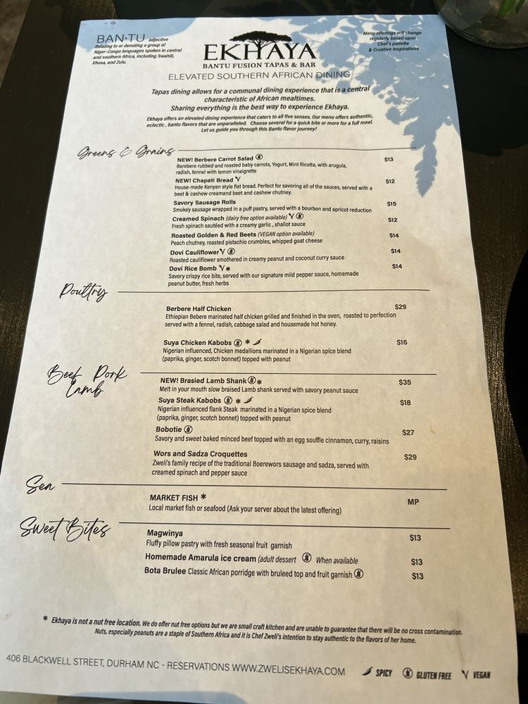 Ekhaya is a captivating breakfast and brunch destination located at 406 Blackwell St, Suite 100, Durham, NC. This cozy yet upmarket restaurant, proudly black and women-owned, offers a diverse menu that highlights the explosion of flavors artistic in their presentation. Diners can indulge in tapas-style dishes that are rich in taste, with plant-based options available, ensuring inclusivity for all guests.